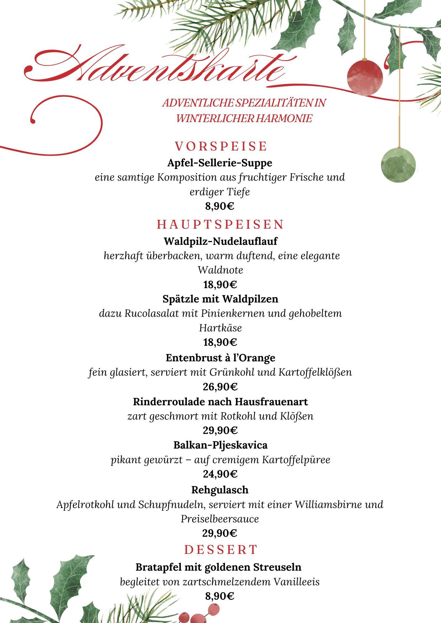 Genießen Sie unsere neue Monatskarte und unser diesjähriges Weihnachtsbuffet!